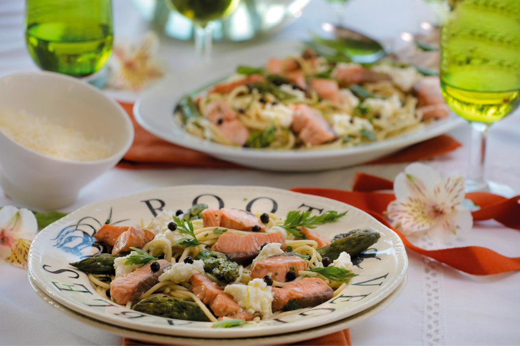 Simples de preparar e delicada massa com salmão é sempre uma opção gourmet e é ideal para celebrar a família.
